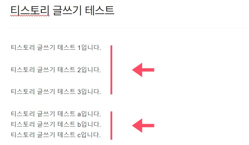 처음 티스토리를 시작하고 본문 글을 작성하면 줄과 줄 사이의 간격이 위처럼 넓게 나올 수 있다. 아래처럼 줄과 줄 사이 간격을 좁히려면 아래의 두 가지 방법을 참고하면 된다.